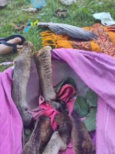 Dood Dier Heilig Dier is een ceremonie waarin we dierlijk leven eren. We luisteren en voelen het materiaal, het wezen en de geesteskracht die door het dier gestroomd heeft. We danken en eren het leven en de dood van het dier, de voorouders van het dier en de kinderen van het dier. Het dode dier verbindt ons via de materie met vragen over de relaties die we aangaan met andere levende wezens. Jagen op dieren, verafgoden van dieren, spullen maken van dieren. Waar staan we ten opzichte van elkaar?